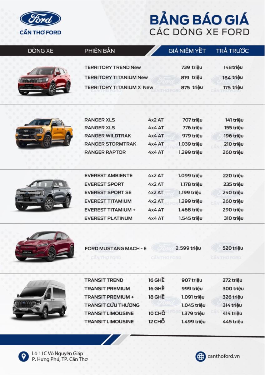 *Cập nhật giá niêm yết từng dòng xe và phiên bản mới nhất