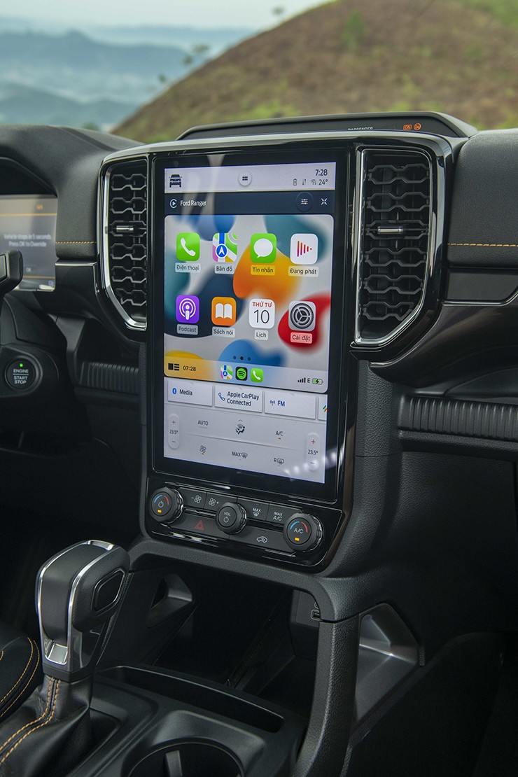 Ford Ranger 2026 đang là mẫu bán tải có màn hình sau tay lái lớn nhất phân khúc. Phanh tay điện tử cũng được làm gọn gàng và sang hơn so với loại cơ vốn khá cồng kềnh và thô như ở thế hệ trước.